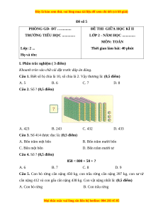 Câu 2. Số ? (0,5 điểm) A. 423 B. 243 C. 432 D. 433