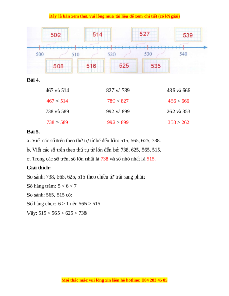 Bài 4. Viết hai số đã cho vào đúng ô trống. (1,5 điểm) 467 và 514 827 và 789 486 và 666 …….. < …….. …….. < …….. …….. < ……..