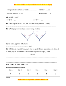 I. Phần trắc nghiệm (3 điểm) Câu 1 Câu 2 Câu 3 Câu 4 Câu 5 Câu 6 A C D B B C Câu 1.