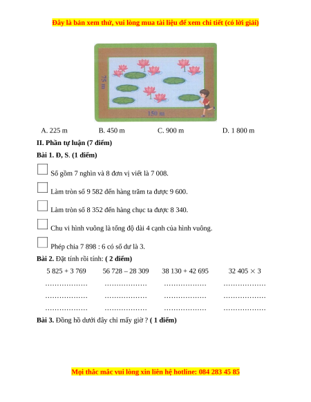 đồng hồ chỉ 16 giờ rưỡi. Thời gian Phong đi thả diều là: (0,5 điểm) A. 35 phút B. 40 phút C. 45 phút D. 50 phút