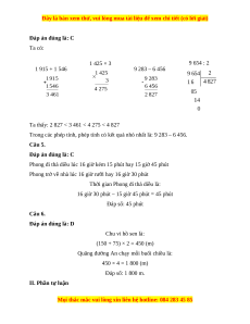 Câu 4. Trong các phép tính sau, phép tính có kết quả nhỏ nhất là: (0,5 điểm) A. 1 915 + 1 546 B. 1 425 × 3 C. 9 283 – 6 456 D. 9 654 : 2