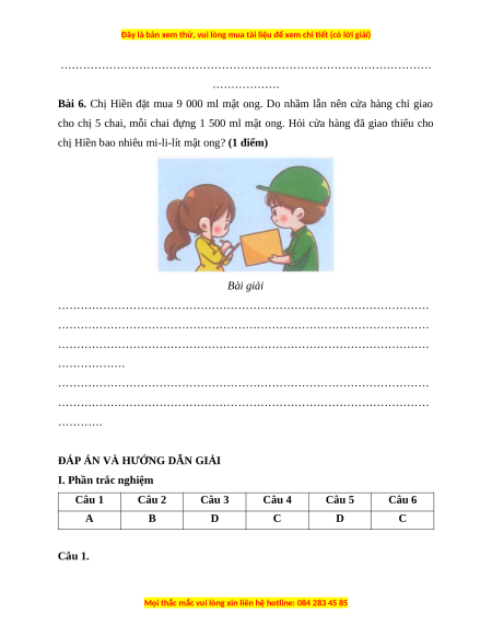Bài 6. Chị Hiền đặt mua 9 000 ml mật ong. Do nhầm lẫn nên cửa hàng chỉ giao
