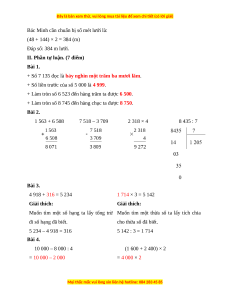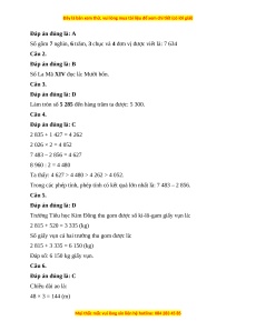 Làm tròn số 5 285 đến hàng trăm ta được: 5 300. Câu 4. Đáp án đúng là: C 2 835 + 1 427 = 4 262 2 026 × 2 = 4 052 7 483 – 2 856 = 4 627 8 960 : 2 = 4 480