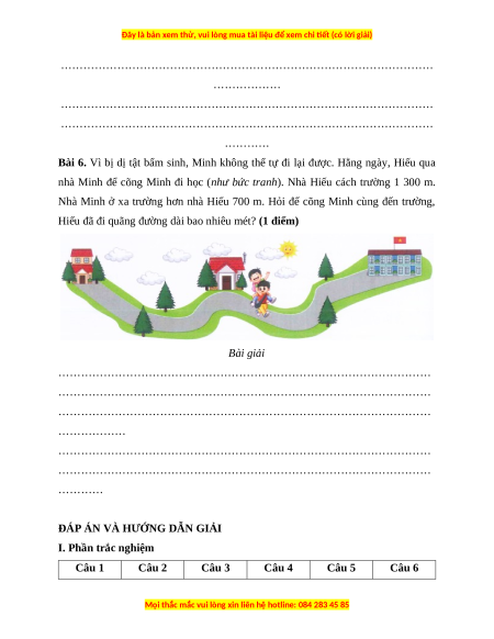 Hiếu đã đi quãng đường dài bao nhiêu mét? (1 điểm)