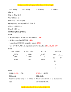 Câu 4. Trong các phép tính sau, phép tính có kết quả nhỏ nhất là: A. 1 915 + 1 546 B. 1 425 × 3 C. 9 283 – 6 456 D. 9 654 : 2