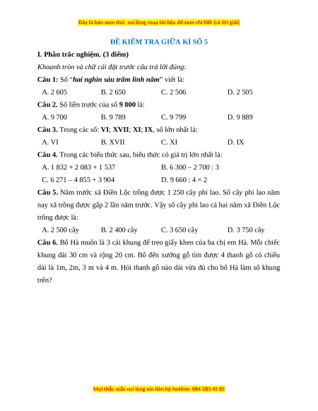 ĐỀ KIỂM TRA GIỮA KÌ SỐ 5