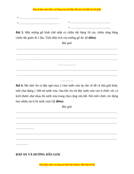Bài 5. Một miếng gỗ hình chữ nhật có chiều dài bằng 18 cm, chiều rộng bằng