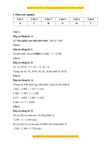 I. Phần trắc nghiệm Câu 1 Câu 2 Câu 3 Câu 4 Câu 5 Câu 6 A C B A D C Câu 1. Đáp án đúng là: A
