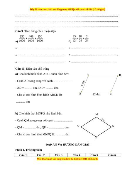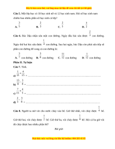 phần con đường để xong cả con đường là: A. con đường B. con đường C. con đường D. con đường Phần II. Tự luận Câu 7. Tính. a)