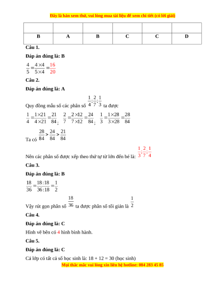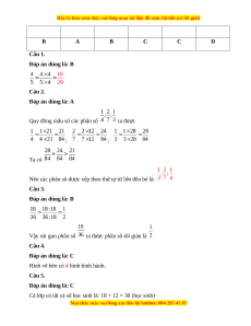 Nên các phân số được xếp theo thứ tự từ lớn đến bé là: Câu 3. Đáp án đúng là: B Vậy rút gọn phân số