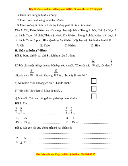 Bài 3. Rút gọn rồi quy đồng mẫu số hai phân số: