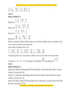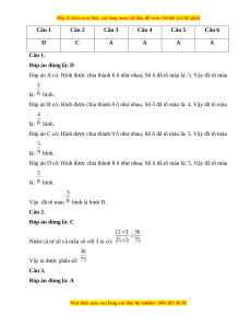 Câu 1 Câu 2 Câu 3 Câu 4 Câu 5 Câu 6 D C A A A A Câu 1. Đáp án đúng là: D