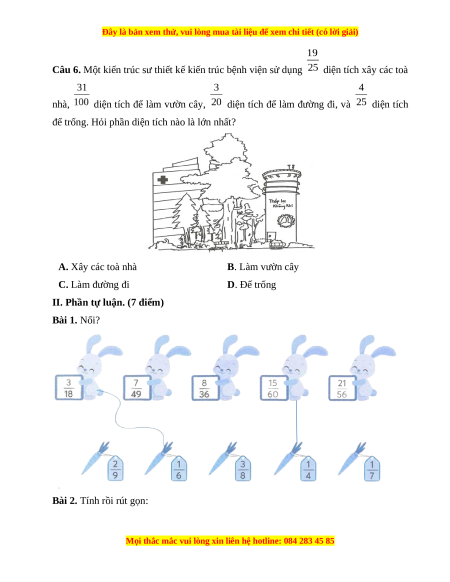 Câu 6. Một kiến trúc sư thiết kế kiến trúc bệnh viện sử dụng diện tích xây các toà nhà,
