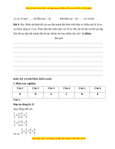 I. Phần trắc nghiệm Câu 1 Câu 2 Câu 3 Câu 4 Câu 5 Câu 6 D D A C B A Câu 1. Đáp án đúng là: D Quy đồng mẫu số: Ta có: