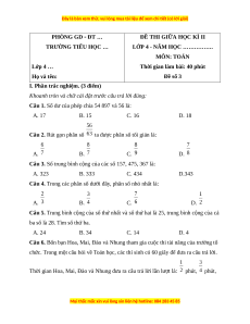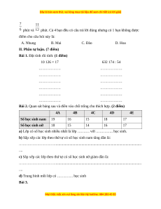 LỚP 4 - NĂM HỌC ……………. MÔN: TOÁN Lớp 4 …