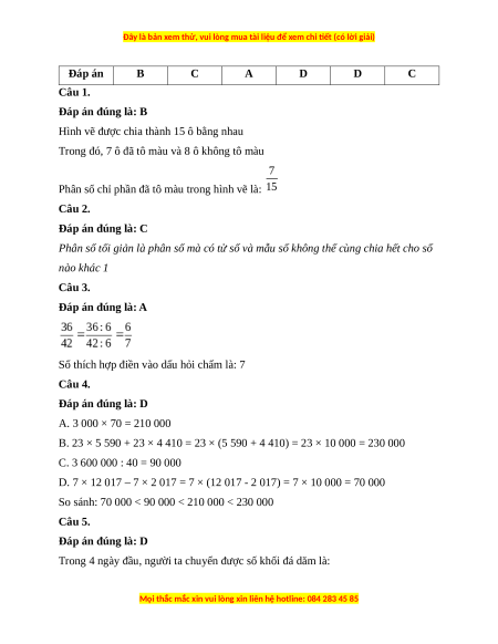 So sánh: 70 000 < 90 000 < 210 000 < 230 000 Câu 5. Đáp án đúng là: D