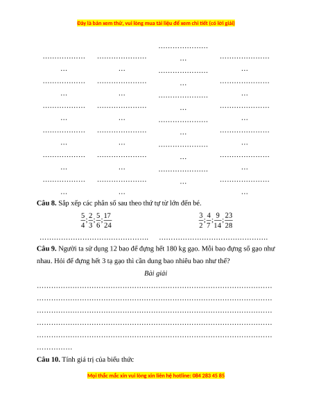 Câu 8. Sắp xếp các phân số sau theo thứ tự từ lớn đến bé.