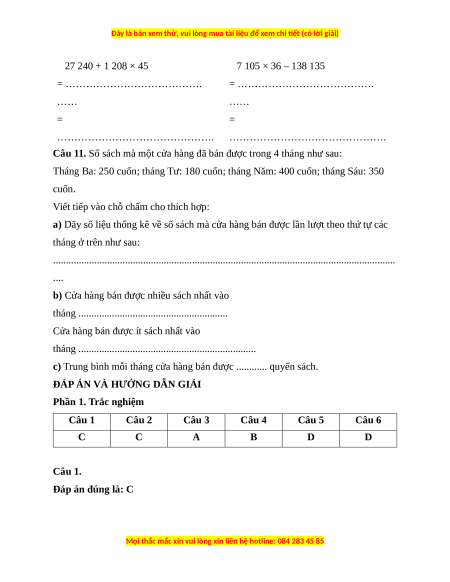 Câu 11. Số sách mà một cửa hàng đã bán được trong 4 tháng như sau: