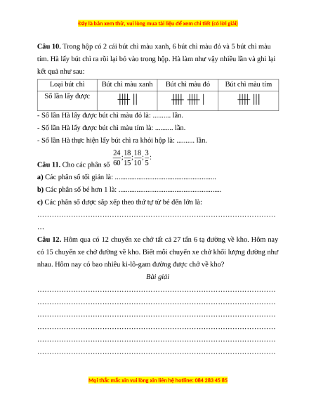Câu 5. Các phân số được xếp theo thứ tự từ bé đến lớn là: A. B. C. C.