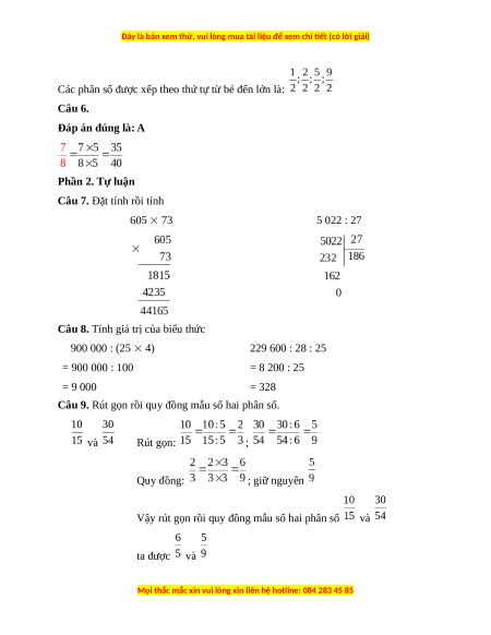Câu 7. Đặt tính rồi tính 605 73 5 022 : 27 …………………….. …………………….. …………………….. …………………….. ……………………... ……………………... …………………….. …………………….. …………………….. …………………….. ……………………... ……………………...