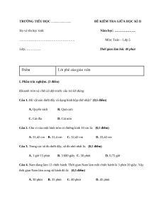 ĐỀ KIỂM TRA GIỮA HỌC KÌ II Họ và tên học sinh: