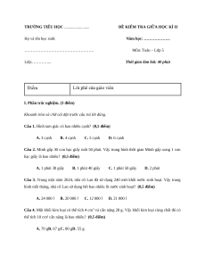 ĐỀ KIỂM TRA GIỮA HỌC KÌ II Họ và tên học sinh: