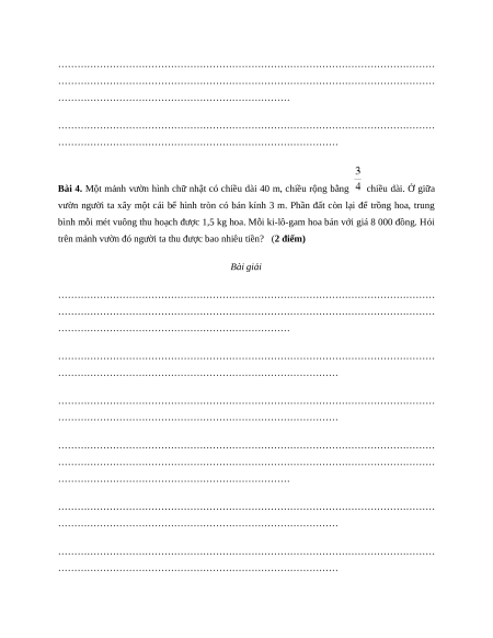 vườn người ta xây một cái bể hình tròn có bán kính 3 m. Phần đất còn lại để trồng hoa, trung