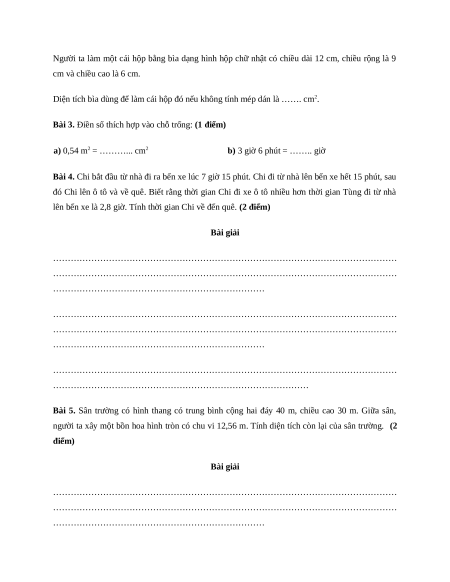 Bài 5. Sân trường có hình thang có trung bình cộng hai đáy 40 m, chiều cao 30 m. Giữa sân,