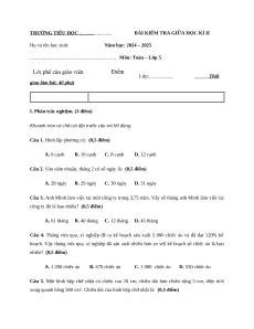 Đề thi Giữa kì 2 Toán lớp 5 Chân trời sáng tạo (Đề 4)