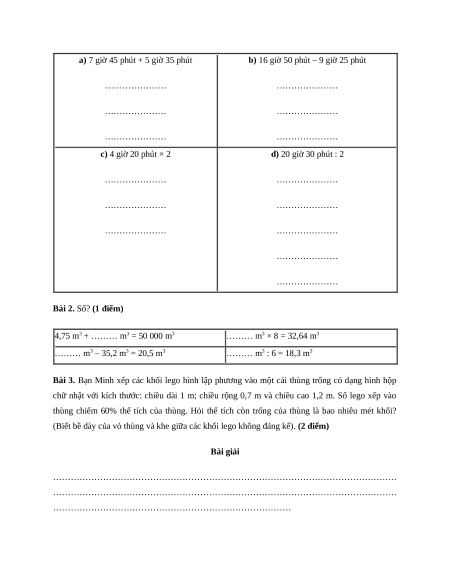 d) 20 giờ 30 phút : 2 ………………… ………………… ………………… ………………… ………………… ………………… ………………… …………………