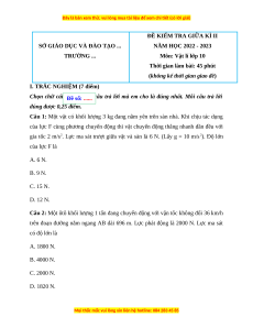 Câu 1: Một vật có khối lượng 3 kg đang nằm yên trên sàn nhà. Khi chịu tác dụng