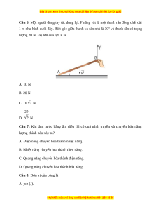Câu 6: Một người dùng tay tác dụng lực F nâng vật là một thanh rắn đồng chất dài