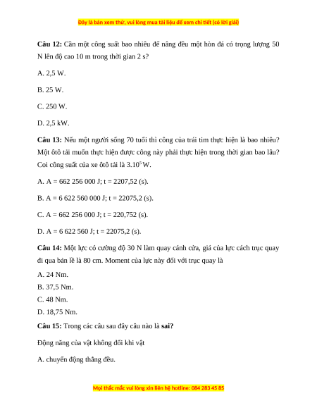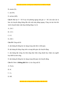 Câu 11: Đơn vị không phải đơn vị của công suất là A. N.m/s. B. W. C. J.s. D. HP.