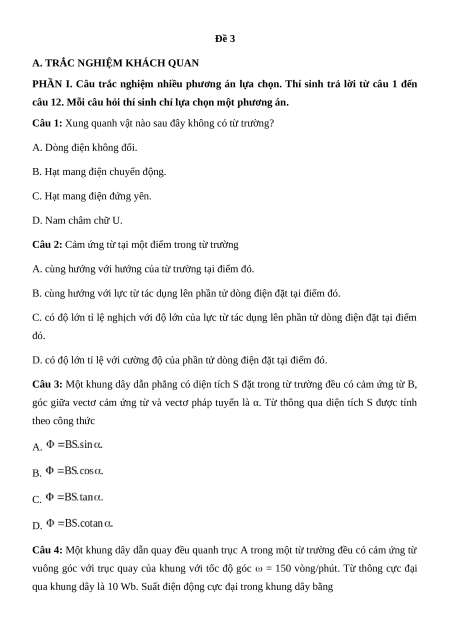 Câu 3: Một khung dây dẫn phẳng có diện tích S đặt trong từ trường đều có cảm ứng từ B,