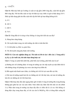 Câu 11: Một máy biến áp lí tưởng có cuộn sơ cấp gồm 2400 vòng dây, cuộn thứ cấp gồm