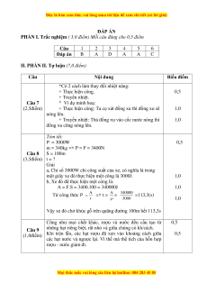 + Truyền nhiệt: Thả đồng xu vào cốc nước nóng thì 1,0 đồng xu cũng nóng lên. Tóm tắt: P = 3000W 0,5 m = 340kg => P = F = 3400N Câu 8 S = 100m (3,5điểm) t = ? Giải