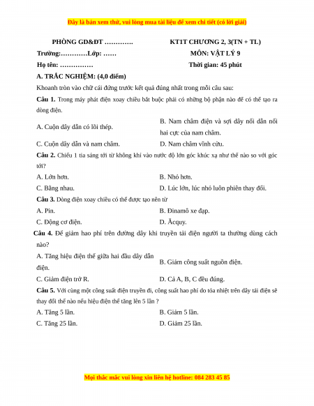 - Bộ 11 Đề thi giữa kì 2 Vật lí 9 năm 2023 chọn lọc từ các trường bản word có lời giải chi tiết biên soạn công phu bám sát đề thi minh họa của Bộ GD&ĐT.