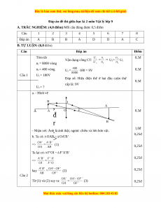Đáp án đề thi giữa học kì 2 môn Vật lý lớp 9