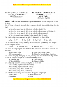 NĂM HỌC: …………. HUYỆN ………… MÔN: Vật lí 9 (Thời gian 45 phút)