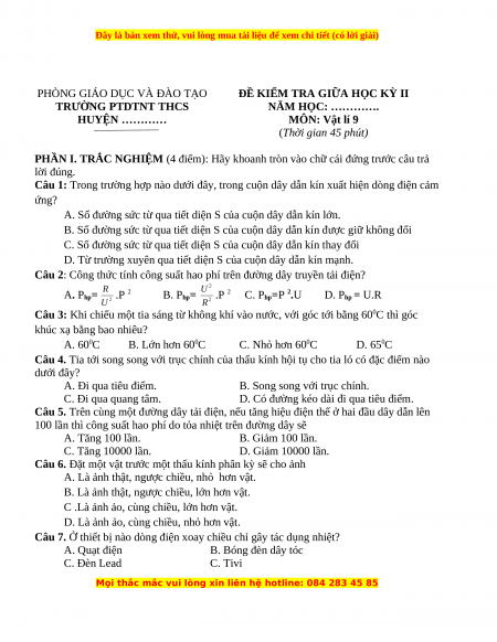 - Bộ 11 Đề thi giữa kì 2 Vật lí 9 năm 2023 chọn lọc từ các trường bản word có lời giải chi tiết biên soạn công phu bám sát đề thi minh họa của Bộ GD&ĐT.