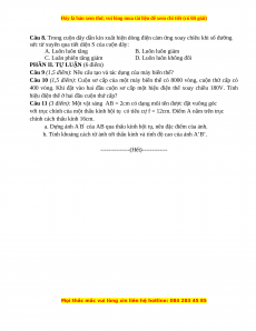 Câu 10 (1,5 điểm): Cuộn sơ cấp của một máy biến thế có 8000 vòng, cuộn thứ cấp có
