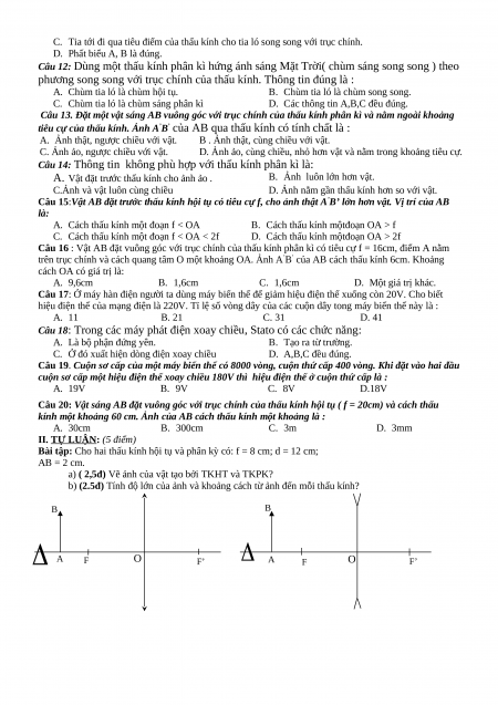 Câu 9: Đặt một vật sáng AB vuông góc với trục chính của thấu kính hội tụ và nằm ngoài khoảng tiêu