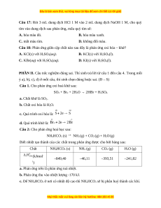 Câu 3: Cho phản ứng hoá học: H2(g) + I2(g) → 2HI(g). Tốc độ trung bình của