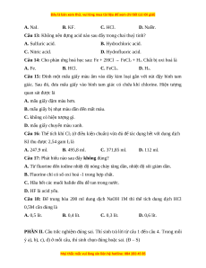 Câu 16: Thể tích khí Cl2 (ở điều kiện chuẩn) vừa đủ để tác dụng hết với dung dịch