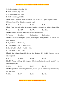 Câu 9: Trong bảng tuần hoàn các nguyên tố hóa học, các nguyên tố halogen thuộc nhóm A. IA. B. VIIA. C. VA. D. VIIIA.