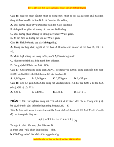 Câu 13: Ở trạng thái lỏng, giữa các phân tử hydrogen halide nào sau đây tạo được liên kết hydrogen mạnh? A. HCl. B. HI. C. HF. D. HBr.