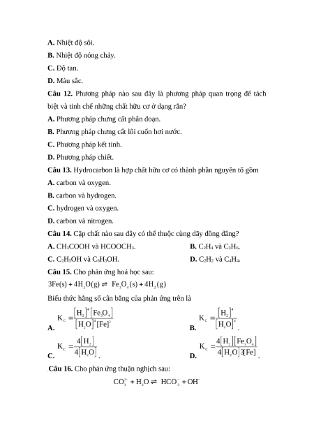 .Câu 16. Cho phản ứng thuận nghịch sau: