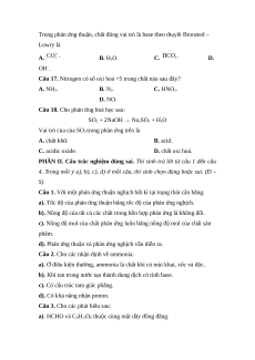 Câu 17. Nitrogen có số oxi hoá +5 trong chất nào sau đây? A. NH3. B. N2. C. HNO3. D. NO.