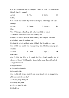 Câu 5. Chất nào sau đây là thành phần chính của thuốc cản quang trong kĩ thuật chụp X - quang? A. FeS. B. FeS2. C. CaSO4. D. BaSO4.
