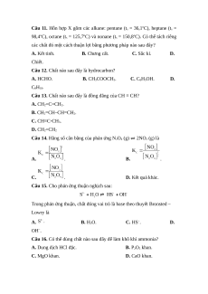 Câu 11. Hỗn hợp X gồm các alkane: pentane (ts = 36,1oC), heptane (ts =